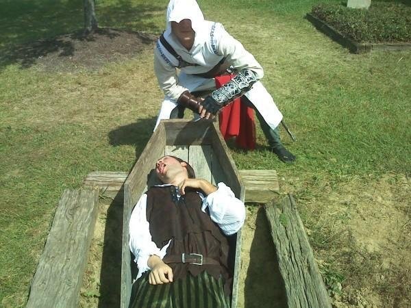 That’s me in the Assassins Garb. Sometimes you just have to step outside and focus more on the present and say to hell with anyone who may think you look a little foolish, happiness is found in the moment and memories last forever.